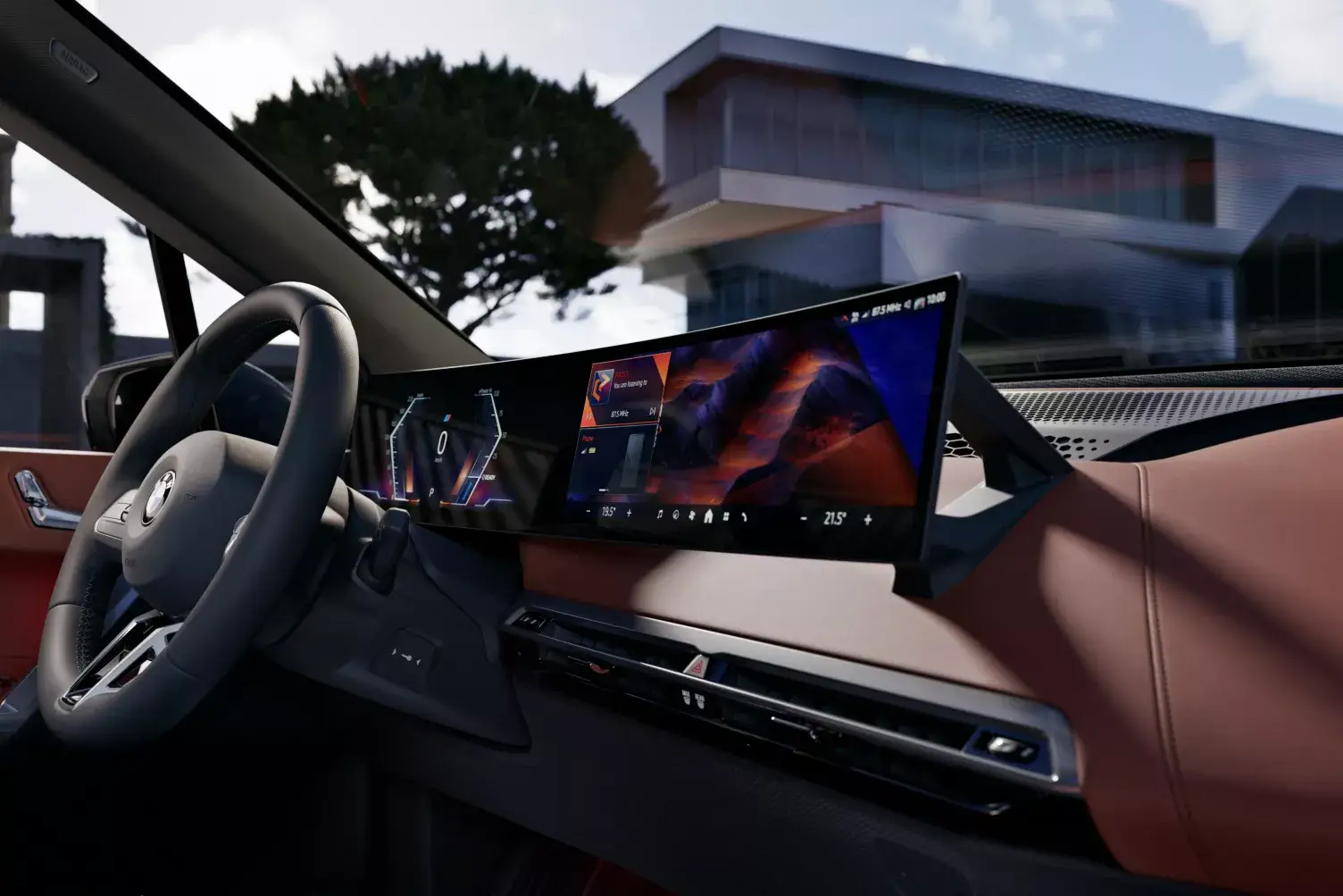 O BMW Curved Display grande e flutuante está convenientemente inclinado para o condutor. Tem uma aparência leve e delicada no tablier elegante, enquanto o BMW Head-up Display está subtilmente oculto.