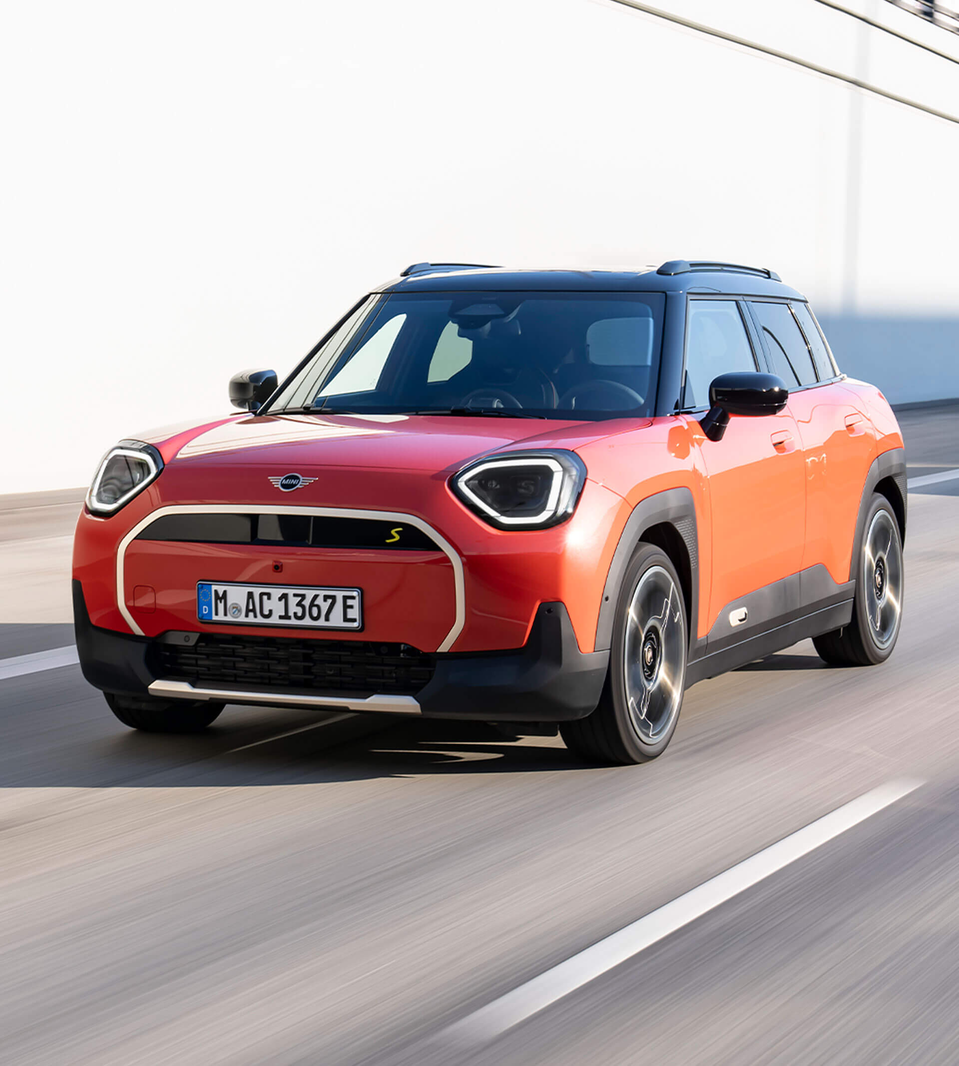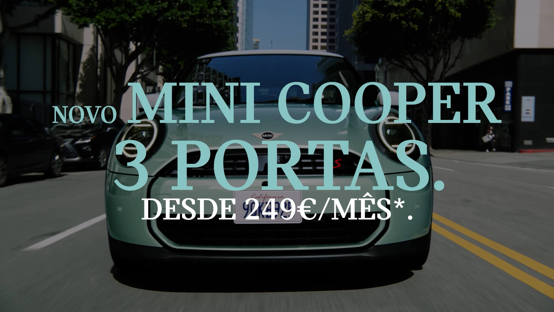 *Condições válidas para clientes empresa em contratos Select (Contrato de Aluguer Operacional) para MINI Aceman Cooper E Versão Essential (J05). Prazo: 48 meses e 60.000km. Primeiro Aluguer: 5.633,11€. Valor estimado no final do contrato: 14.466,79€. Comissão de abertura de dossier: 260,00€. Comissão de gestão mensal de 3,25€ (incluído no valor do aluguer). Os valores apresentados não incluem IVA. Condições sujeitas a alteração sem aviso prévio e válidas nos Concessionários aderentes para viaturas encomendadas de 01/01/2025 a 28/02/2025 com proposta aprovada até 28/02/2025. Consumo de energia em kWh/100 km (combinado): 14,1 kWh/100 km. Emissões de CO, em g/km (combinadas): 0. Viatura não contratual. Consulta as condições no teu Concessionário MINi. Informa-te junto da BMW Renting. **Campanha de oferta de 1 ano de carregamento ilimitado nos postos ultrarápidos IONITY, na compra de um MINI 100% elétrico. Oferta válida na rede IONITY em Portugal e resto da Europa, para encomendas realizadas entre 01/01/2025 até 28/02/2025.