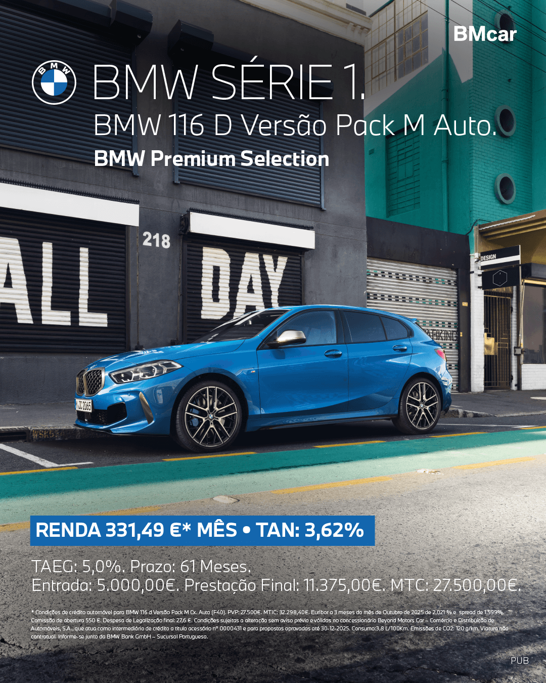 Descubra-o por 331,49€ */ mês até 30 de dezembro de 2025. Campanha exclusiva BMcar.