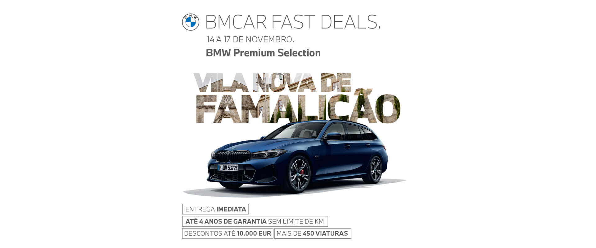 Procure o caminho mais rápido para chegar ao BMcar Fast Deals em Famalicão para ser o primeiro a escolher um BMW da Premium Selection com as condições únicas: descontos até 10.000 euros e 4 anos de garantia.