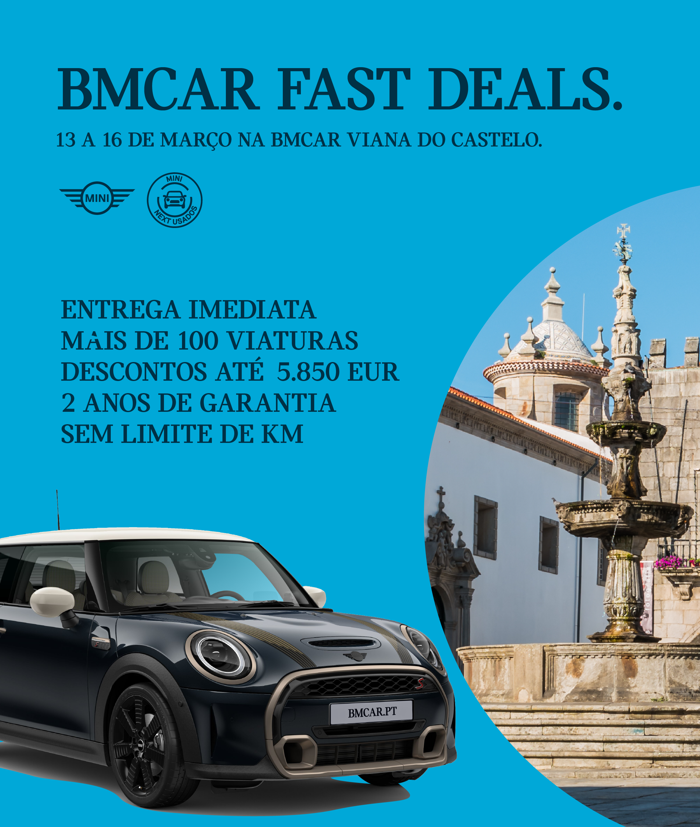 É já dia 13 de Março, que chegam a Viana do Castelo mais de 100 ofertas MINI, com descontos incríveis que podem ir até menos 5.850 euros! Não percas o BMcar Fast Deals que começa em 3… 2… 1…