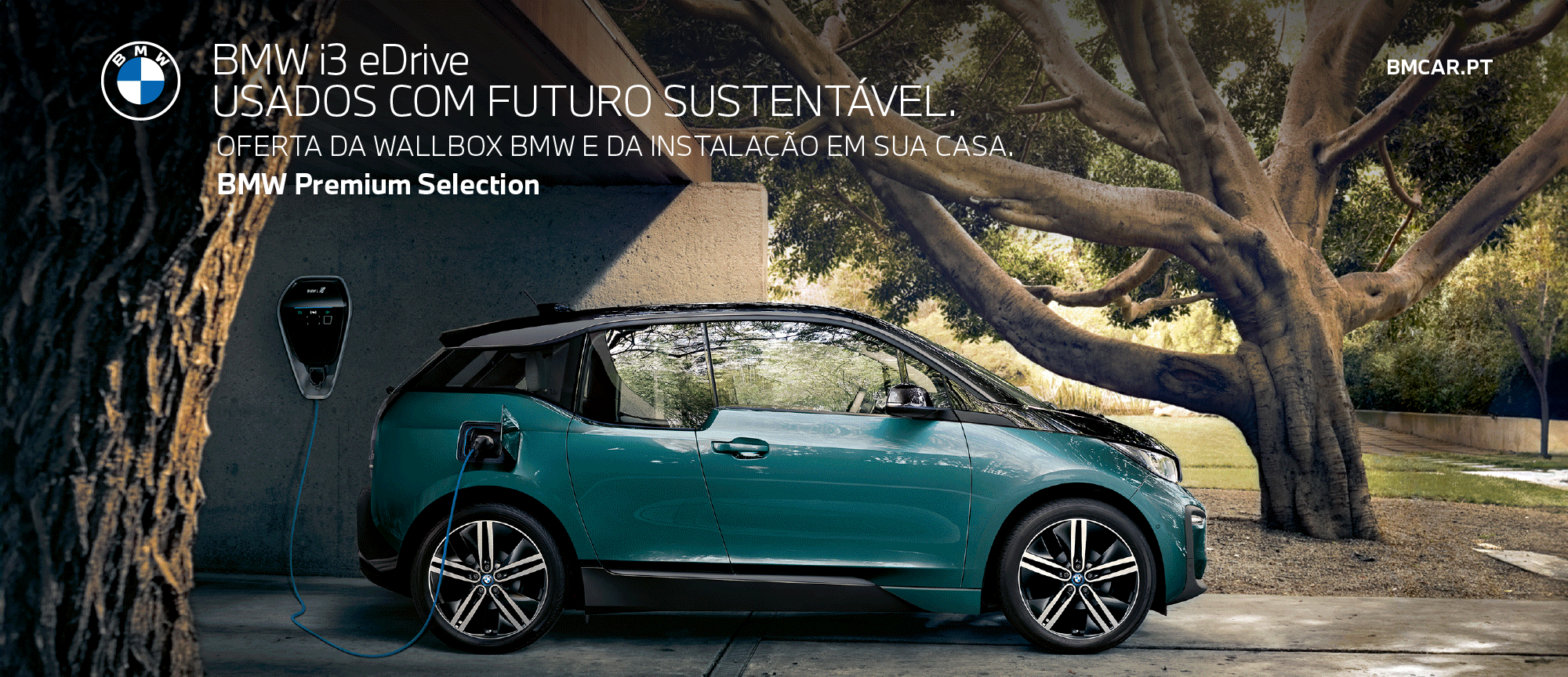 *Campanha de oferta e instalação e Wallbox de 7,4 kW (preparação do local não incluída) através dos parceiros selecionados, válida em Portugal Continental, na compra de qualquer modelo BMW 100% elétrico usado.